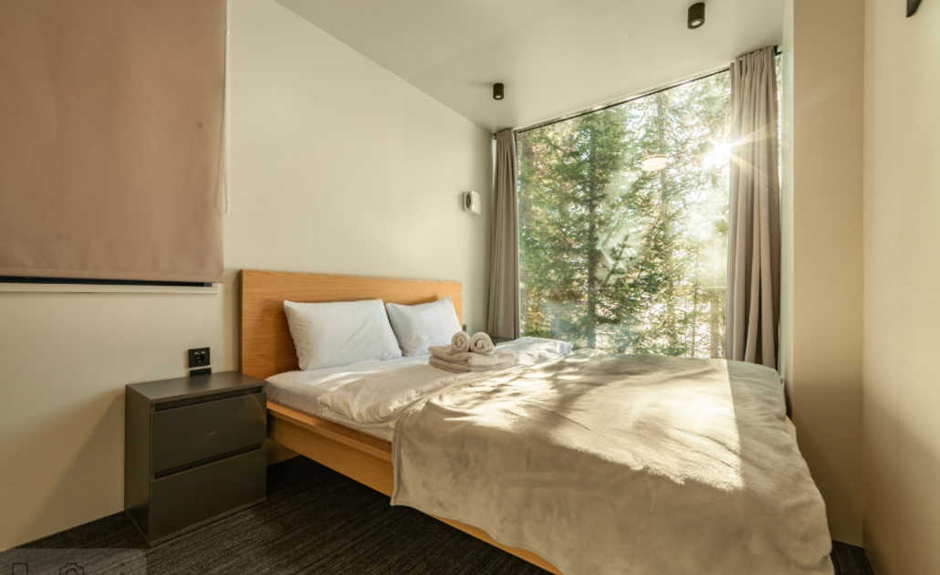 Две спальни с панорамными окнами с двуспальными кроватями и зал с ортопедическим двуспальным диваном. Мини-холодильник, чайный набор, Smart-TV, теплый пол. Вместимость 4 основных места + 2 дополнительных.
